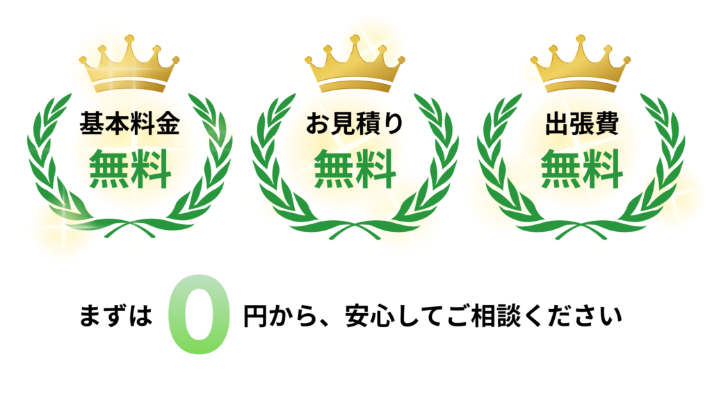 スタッフが訪問し、品目・作業内容を確認してお見積もりをご提示します。出張費・見積もり費・基本料金は0円です。